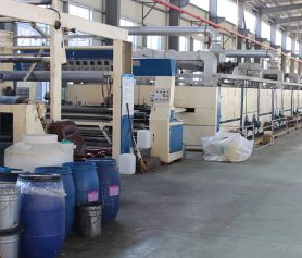 引進(jìn)國外水刺法生產(chǎn)流水線,重型劍桿織布機(jī)臺,整形、熱熔、縫制、設(shè)備配套齊全。